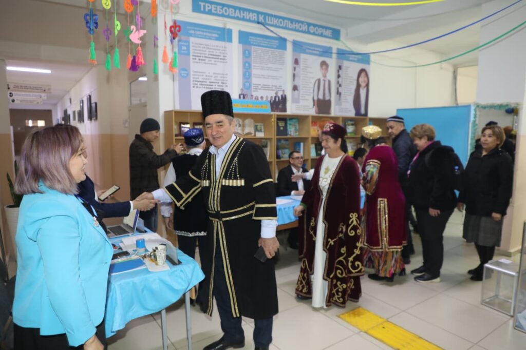 Тұрғындар учаскелерге отбасымен келіп, мерекелік көңіл-күймен дауыс беруде. Күннің екінші жартысында да сайлаушылардың қарасы азаймаған.